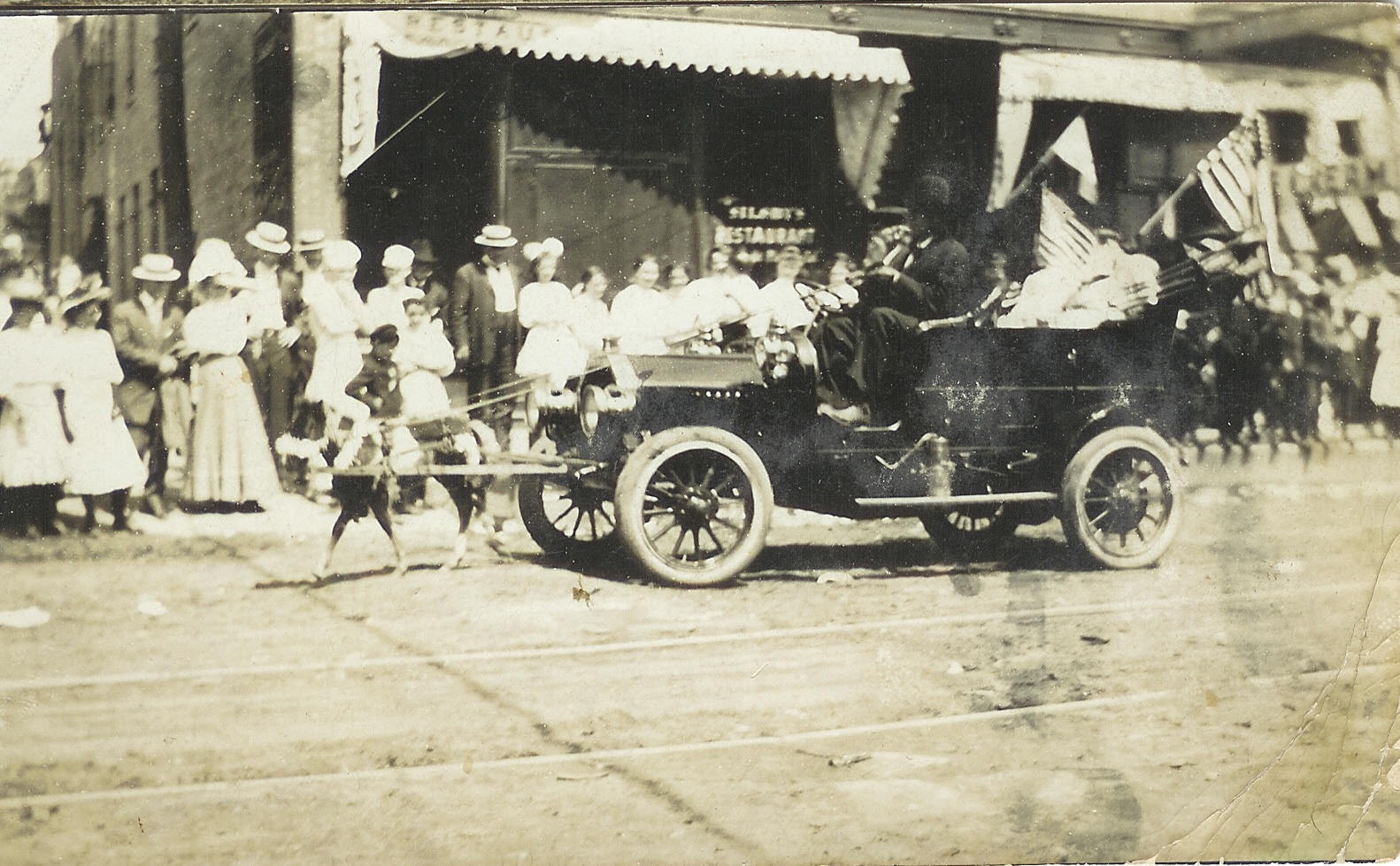 In 1913 J.H. Miller drove his miniature pony powered car down Main Street.