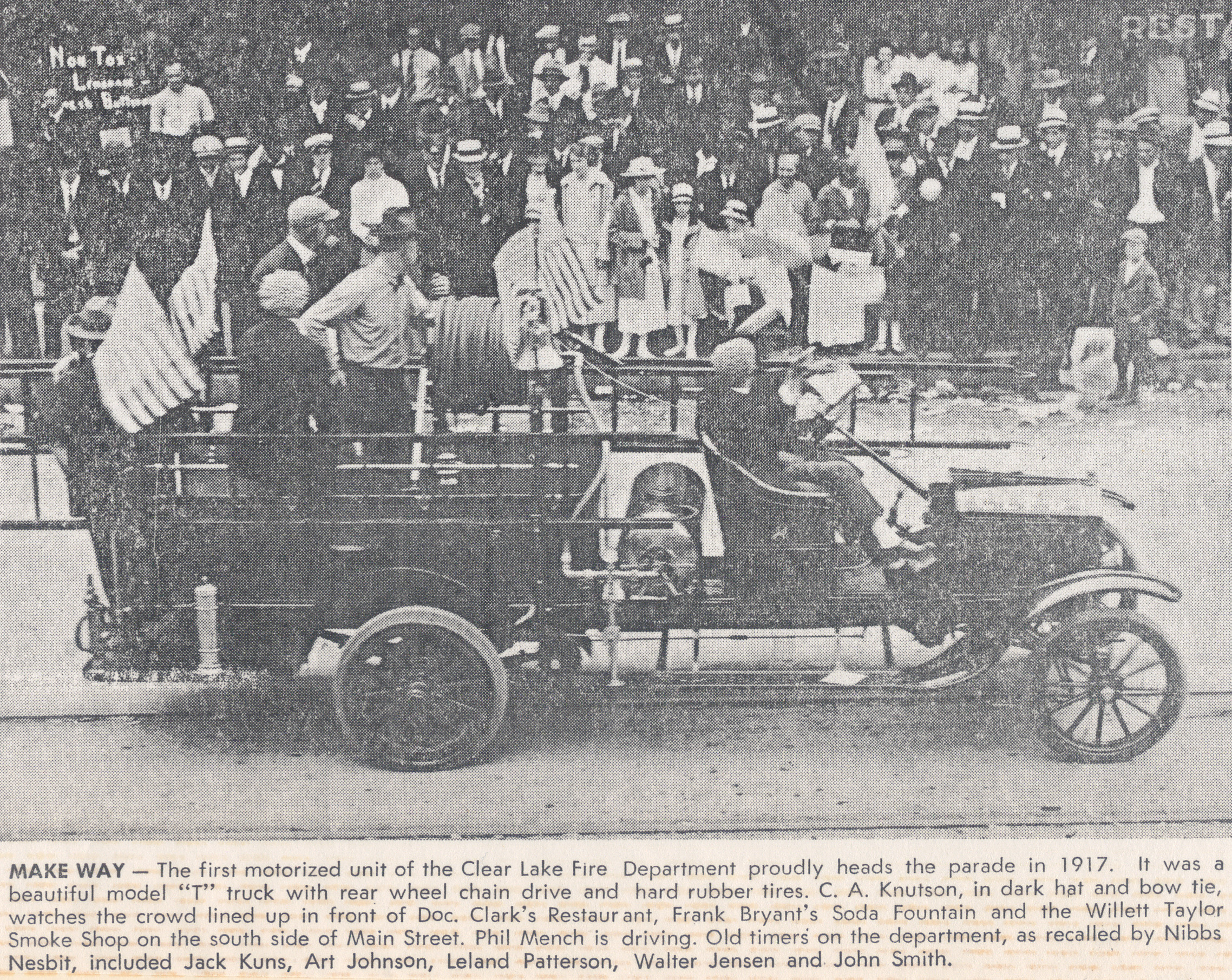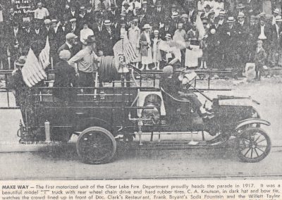 The fire department’s first motorized truck made her debut in the 1917 parade.