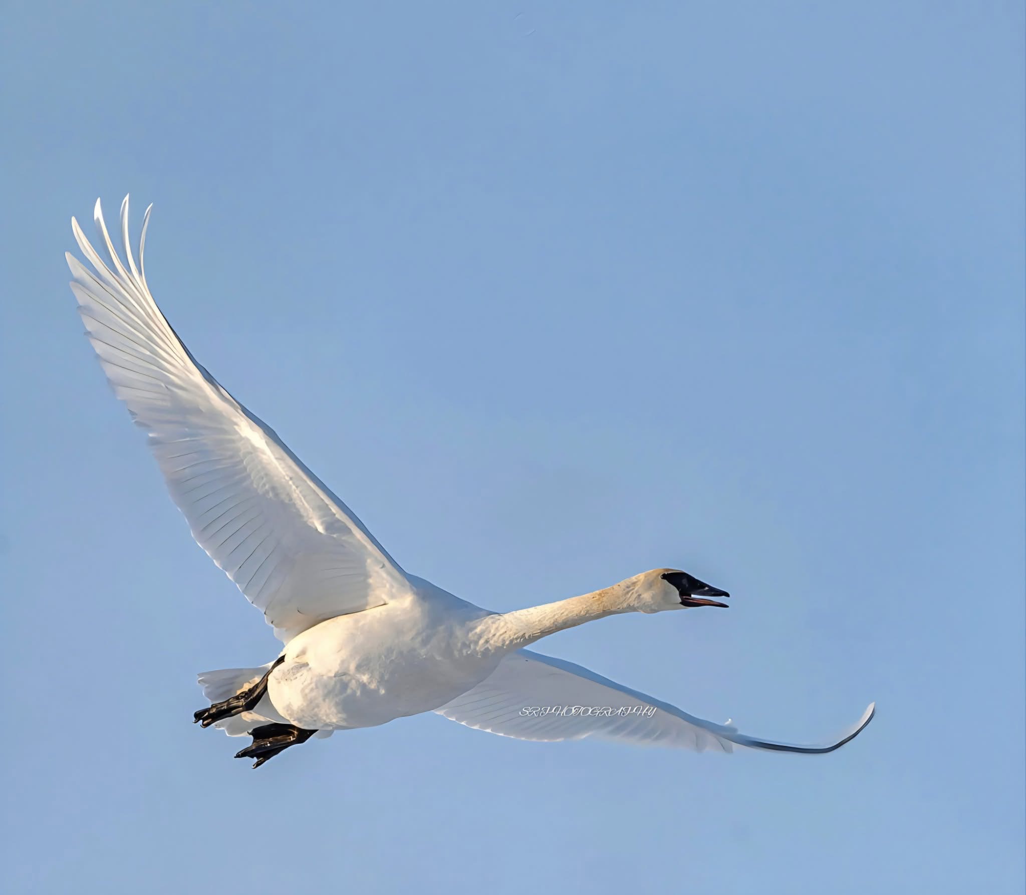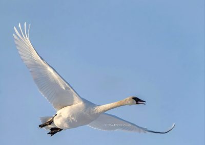 When European settlers arrived in Iowa, Trumpeters were plentiful. The handsome bird was prized for its beautiful white plumage. Many a lady’s hat was adorned with the huge feathers. The quills became pens and the swan’s extra soft skin was turned into powder puffs. The magnificent bird with a wingspan of up to 10’ could reach 28 pounds. They provided a tasty meal for a crowd or several days of food for a family.