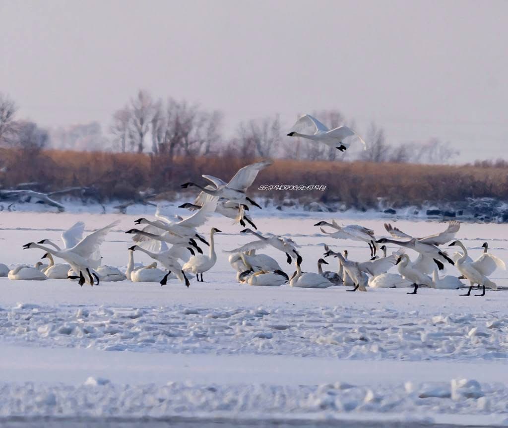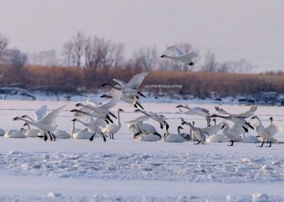 Ron and his partners in one of the greatest restoration projects in nature are seeing astonishing results. In March there were hundreds of Trumpeters gathering on Crystal Lake. What a sight and sound! They have now moved on to their favorite breeding grounds.