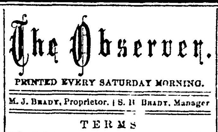 The Observer newspaper established beginning a continous local newspaper publication